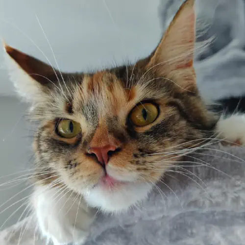 Sinds 12 september 2021 woont Lady bij ons. Ze is onze eerste Maine Coon. In het begin verstopte ze zich als ze ons niet zag. Toen Missy een paar dagen later ook bij ons kwam wonen was dit over. Ze is helemaal op haar gemak en het liefst altijd bij ons in de buurt. Ze heeft een lief karakter en kan op haar manier hele gesprekken met ons voeren.